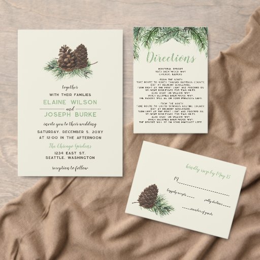 This Rustic Pine cone Winter Wedding Invitation has a forest feel with pine leaves and rustic cones ,additional monogram on back gives it a perfect looks fir your rustic wedding