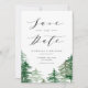 Announce your wedding date with this customisable save the date card. It features watercolor trees, elegant script and simple typography. Personalise this forest save the date announcement by adding your wedding details. This woodland save the date card is perfect doe spring weddings and winter weddings.