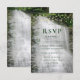 The outdoor rustic themed wedding RSVP card features string lights at the top of the beautiful silky-white waterfall.