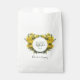 This design features rustic yellow wattle acacia flowers native to Australia. The Australian yellow wattle flowers wreath frame the wedding date. The yellow tones of the wattle flowers and its greenery create a rustic floral country garden bush feel. Rustic wedding favour bag design with modern elements. Matching wedding invitations and other stationery items are also available.