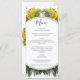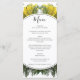 This design features rustic yellow wattle acacia flowers native to Australia. The Australian yellow wattle flowers wreath frame the wedding date. The yellow tones of the wattle flowers and its greenery create a rustic floral country garden bush feel. Rustic wedding menu card design with modern elements. Matching wedding invitations and other stationery items are also available.