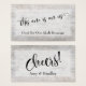 Offer your guests some complementary libations with these pretty, rustic drink tickets. On one side you read "this one is on us" and "Good for One Adult Beverage" and on the other side is "Cheers!" and a template place holder for your names. Non-editable text graphic overlays are rendered in a beautiful calligraphy script font with swirls and flourishes. Other text appears in a versatile serif typeface that can be changed if you wish. The background has been covered in a rustic, weathered grey wood photo which was partially masked by a translucent white rectangle that helps the black text stand out. Part of a growing set of pieces designed to complement your casual, country, mountain or beach wedding events. Please do not hesitate to reach out if you have requests or need customising assistance. // 57 //