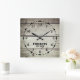 Personalise this rustic wood look wall clock design with your own text. Acrylic wall clock is created in a weathered grey wood slats th printed pattern that would fit especially great into any mountain cabin, beach house or man-cave decor. Available in your choice or round or square faces.