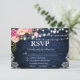 Rustic Wedding Blue Wood String Lights Lace Watercolor Pink Floral RSVP Card with Meal choices
