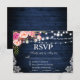 Rustic Wedding Blue Wood Floral Lace RSVP w/Meal Card