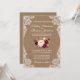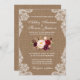 Rustic Wedding Burlap Lace with Watercolor Burgundy Marsala Floral Invitation