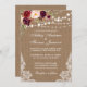 Rustic Burlap String Lights Lace Burgundy Watercolor Floral Wedding Invitation