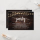 Mark the beginning of your forever with rustic elegance using our cottage and village string lights dark brown wood background themed, wedding elopement celebration invitation card, "Happily Ever After Party". Perfect for couples extending their joyous occasion, this invitation exudes sophistication with a hint of playfulness, setting the stage for a memorable event. Adorned with a timeless modern script design theme, it adds a touch of refined charm to your festivities. Crafted by TeeshaDerrick, this invitation promises to beautifully capture your love story.