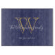 Rustic Wedding Gift Monogram Initial And Personalised Family Name Blue Cutting Board. Personalised monogram initial, with the family's last name or your own name and established date in script lettering on a deep blue background. A unique gift for weddings, newlyweds and bridal shower gifts.