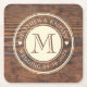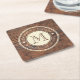 Rustic Wedding Heart Monogram in Dark Walnut Square Paper Coaster