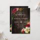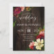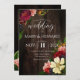 Beautiful and charming rustic garden wedding invitation featuring dark wood background and gorgeous flowers and berries and elegant script font.