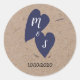 Rustic Wedding | Kraft Paper Monogram Navy Heart Classic Round Sticker