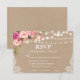 Rustic Wedding String Lights Lace Watercolor Pink Blush Floral RSVP Kraft Card - Meal Choices