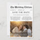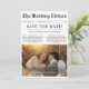 Share your love story creatively and rustically with this black-and-white newspaper-style save-the-date. Featuring a romantic photo set against tall golden grass, it's perfect for couples who love that cosy boho vibe. With a QR code for easy guest access, it blends vintage charm with modern convenience. Whether you're planning a western-themed wedding or want something fun, affordable, and full of personality, this card is a stylish way to say, "We're getting married!