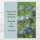 Say "thank you" to your wedding guests with a take home keepsake or a special bottle of wine for the reception table. These wine bottle labels feature a photo of spring pine tree berries. These round berries are a beautiful blue grey colour growing in clusters along the green pine branches. Words of appreciation, the bride and groom's names and wedding date appears against a matching blue background and can easily be personalised.