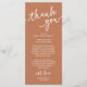 Add a personal and thoughtful touch to your wedding celebration with this modern rustic cottage copper terracotta brown dinner place setting thank you card. Designed to be placed at each guest’s seat, this elegant piece of wedding stationery helps you express gratitude and create a warm, welcoming atmosphere. With its rustic hand drawn script, it’s perfect for enhancing your wedding dinner, reception, or rehearsal dinner décor. Customise with your names, and / or a special message to make it truly yours. A beautiful keepsake for guests to remember your day, this card is a stylish detail that complements rustic cottage celebrations.