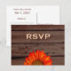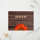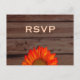 Rustic wedding RSVP postcards with orange sunflower and customisable text