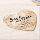 Introducing our Rustic Wedding Save our Date Print Wood Grain Paper Coaster. These heart-shaped coasters are a unique and stylish way to announce your wedding date and set the tone for your rustic wedding.