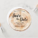 That perfect Save the date card for your rustic wedding theme would have elements of wood grain. I wanted to design a round card imitating a wood, disc slice you often see at beautiful and romantic weddings. Customise the bride and groom names, wedding date, location and include your wedding website on the back with a QR code. This design is fully customisable, delete and edit any text using the "Customise further" function.