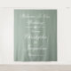 Rustic Simple Wedding Script Personalised Names Sage Green Backdrop. Chic personalised Sage Green Wedding Welcome Tapestry Backdrop, Reception Banner or Photo Booth Tapestry Backdrop for reception. Click personalise this template to customise it with the Bride and Groom Names and marriage date quickly and easily. Rustic Wedding Script Names Sage Green Backdrop, is part of the Sage Green wedding Collection in this store. 30 Day