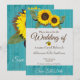 Rustic Teal Wood, Golden Sunflower charming modern country Wedding Invitation, Perfect for this year's weddings