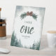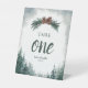 This rustic wedding table number sign features a playful modern font and rich watercolor evergreens with a blue background. Keep in mind you must make a separate purchase for each table you plan to have at your event.
