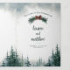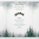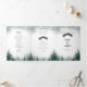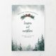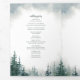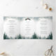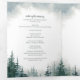 This trifold wedding program features a playful modern font and rich watercolor evergreens against a white page with a blue sky. Perfect for a rustic wedding or any special occasion.