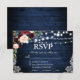 Rustic Wedding Blue Wood String Lights Lace Watercolor Burgundy Marsala Blue Floral RSVP Card with meal choice
