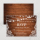 Rustic Wedding Wood String Lights Lace RSVP Card
