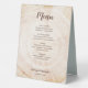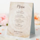 Featuring a wood tree bark cut slice background print, this design perfectly complements rustic, nature-inspired, country, or romantic wedding themes. The unique and easy-to-use template allows you to fully customise all text, including entrée courses, dessert choices, and personal details like the bride and groom names and wedding date. With the menu displayed on both the front and back, these table tent signs are both practical and visually appealing.