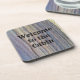 Welcome guests or even yourself to the cabin with this woodgrain coaster. The rustic wood pattern features earth tone colours of black and browns in vertical stripes. "Welcome to the Cabin" is centred in western font and may easily be customised to suit your needs. These coasters are a nice touch to cabin vacation rentals and make your guest's stay even more memorable.