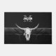 Rustic Western Black And White Bull Skull Monogram Doormat
