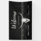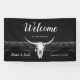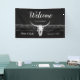 Welcome rustic wedding, western black and white bull cow skull country cowboy dinner reception banner sign. Personalised farmhouse style. Cool old wild west vintage antique inspired. Modern, trendy farm animal design. Custom script. Image copyright Marg Seregelyi Photography.