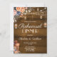 Bring a unique western charm to your celebration with this boho rustic rehearsal dinner invitation. Designed with a warm wood background, delicate florals, glowing string lights, and stylish cowgirl boots, this invitation is perfect for a relaxed yet elegant pre-wedding gathering.