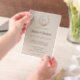 This rustic vellum overlay wedding invitation features a translucent top layer printed with your names, wedding details, and a western-inspired monogram wreath. Designed to layer over a separate photo card or invitation. A perfect touch for ranch, country, or outdoor weddings with a rustic or cowboy-chic theme.