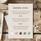 Guide your guests in style with this Western Attire Wedding Insert Card. Perfect for rustic, country, or cowboy-themed weddings, this card features elegant fonts, coordinating colour swatches, and thoughtful dress code suggestions for both ladies and gentlemen. A charming and practical addition to any ranch wedding, barn celebration, or outdoor western event.