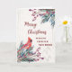 Merry Christmas change of address Christmas card with rustic watercolor winter foliage.