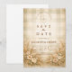 A romantic vintage-inspired design featuring soft wildflowers, golden wheat stems, and glowing lantern accents framing a warm parchment background. Delicate botanical details and earthy neutral tones create a timeless countryside atmosphere with a refined rustic touch. The symmetrical garden framing adds elegance while keeping the overall look soft and inviting. Perfect for an outdoor ceremony, vineyard celebration, or romantic garden setting with classic charm.