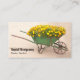 What a great design for an occupation in landscaping, gardening, nursery, or other horticulture related jobs. This photograph of a rusty green antique wheelbarrow filled with blooming yellow Marigolds holds the front of this business card. Fill in the template fields with your information, remove any text or click customise to select a font style, size, and colour you prefer. In customise, you can also select a background colour for the back side other than the beige.