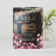 This charming rustic whiskey barrel serves as a unique wedding décor piece, featuring a weathered, aged appearance that exudes vintage elegance. Resting on a wooden platform, the barrel is topped with a sturdy lid, perfect for use as a decorative accent or functional display. A warm string of lights wrapped around a wooden post softly illuminates the dark background, creating an inviting ambiance. Delicate pink and burgundy florals frame the bottom of the scene, adding a romantic and sophisticated touch, making it an ideal setting for a rustic, barn, or country-style wedding.
