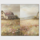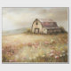 This charming painting depicts a rustic white barn nestled in a field of vibrant wildflowers, evoking a peaceful countryside atmosphere. The soft brushstrokes and warm tones create a nostalgic, farmhouse-style scene perfect for country and rustic decor.