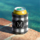 Rustic White Black Buffalo Check Pattern Monogram Can Cooler