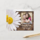Rustic, bold white daisy flower and woodgrain photo wedding save the date postcard. Bold large white daisy with yellow centre paired with your engagement photo and dark brown woodgrain wood background. Additional wording on the back as well.
