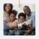 This festive Christmas ornament features a cute rustic white deer overlay and classic Merry Christmas typography with your name, photo, and year.