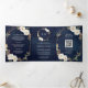 Rustic White Magnolia Floral QR Code Navy Wedding Tri-Fold Invitation