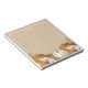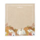 Whimsical autumn notepad featuring a lower border of orange and white pumpkins and pale watercolor flowers. The background is a rustic parchment paper graphic with a white border. At the top is a custom template for you to add your name or leave as notes. An country pumpkin patch notepad with an artistic vibe that makes for a stylish fall country gift.