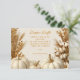 A cosy autumn-inspired baby shower design featuring watercolor white pumpkins, dried wheat, and soft cotton branches. With its rustic harvest charm and neutral tones, this design creates the perfect setting for a warm fall celebration.