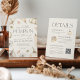 Charming fall baby shower invitations utilise both the front and back of the card to eliminate the need for enclosure cards. Design features a border of muted white and cream pumpkins and fall leaves, with your baby shower details in grey lettering on a soft ivory background. "Our little pumpkin is on the way" appears at the top. Perfect for autumn or Halloween season baby showers. Customise the back with additional details, including a custom QR code for your registry. Shown with text fields for a diaper raffle, books for baby, and unwrapped gift request.