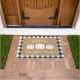 Custom-designed autumn fall decorative doormat featuring rustic farmhouse style buffalo check pattern and white pumpkins design with personalised family name.
