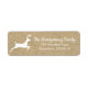 Rustic and chic address labels featuring a white leaping reindeer silhouette. The background is a faux burlap print.